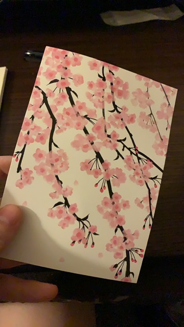 The snacks and postcards are from this year, but the sakura themselves are from last year. It’s still a little chilly for them now.
